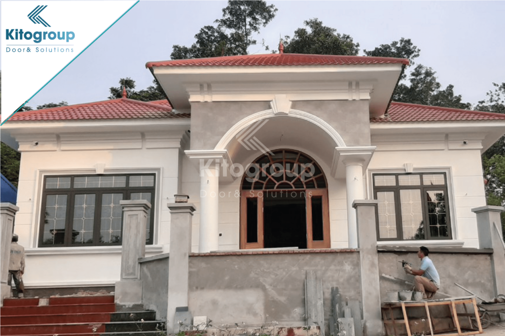 Công trình ANH CƯỜNG Đại Lải sử dụng hệ nhôm Xingfa tem đỏ chính hãng 100% đồng bộ phụ kiện Kinlong chính hãng Kết hợp kính hộp nan mạ đồng. ?